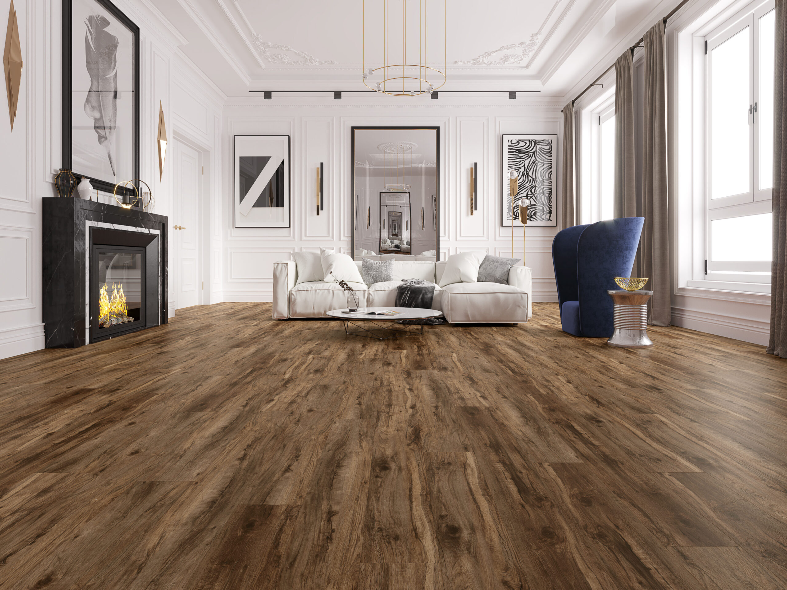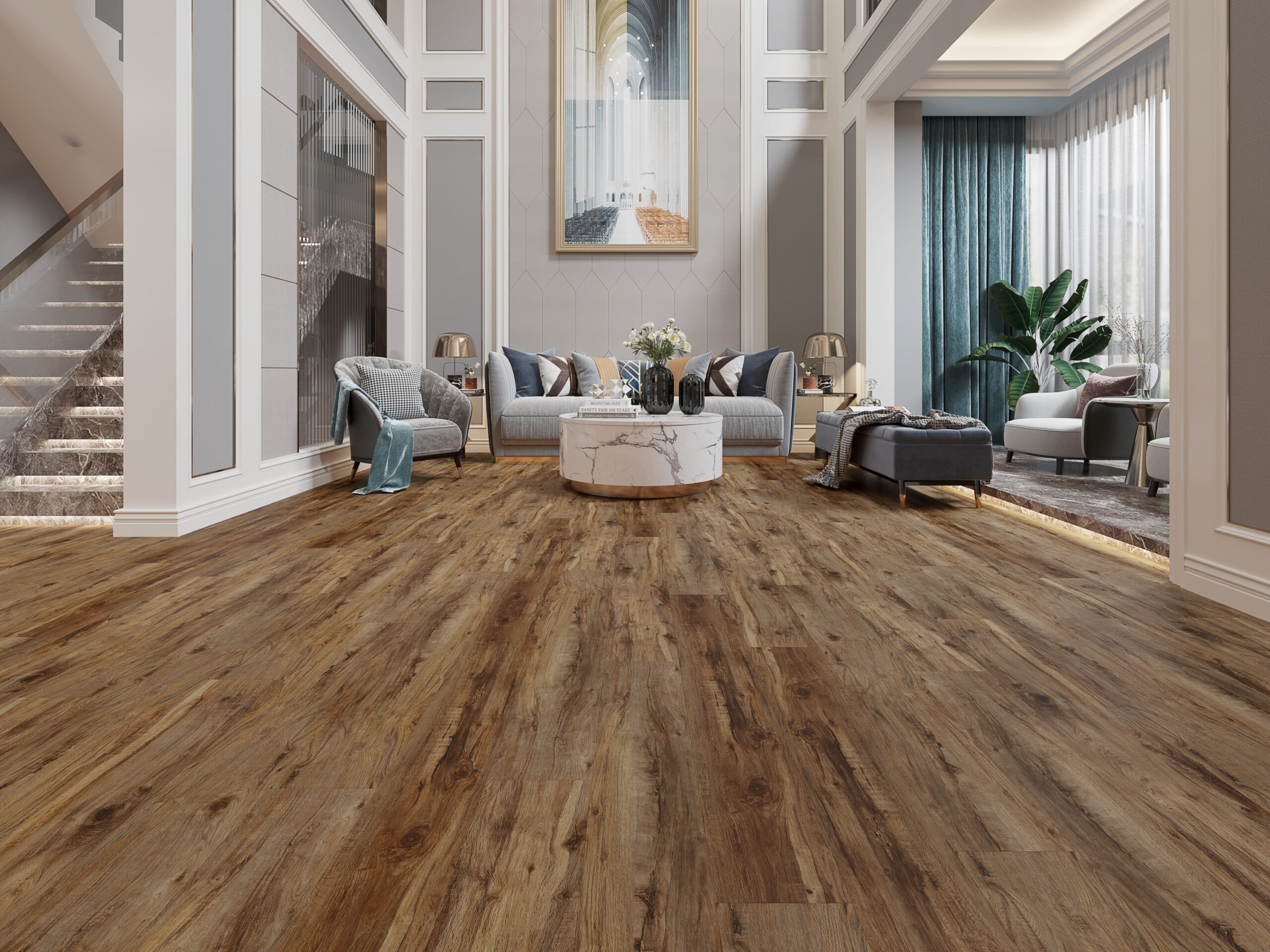 Manhattan 69 is a premium wide-plank wholesale luxury vinyl plank collection featuring the longest planks in the Silent Blue lineup at 60 inches. Designed for contractors working on new construction spec homes, upscale multi-family developments, light commercial buildouts, and large open floor plans where fewer end joints mean faster professional installation and a more expansive visual flow. The 22mil wear layer with Ceramic Bead overlay provides reliable performance for high-traffic residential and light commercial environments.